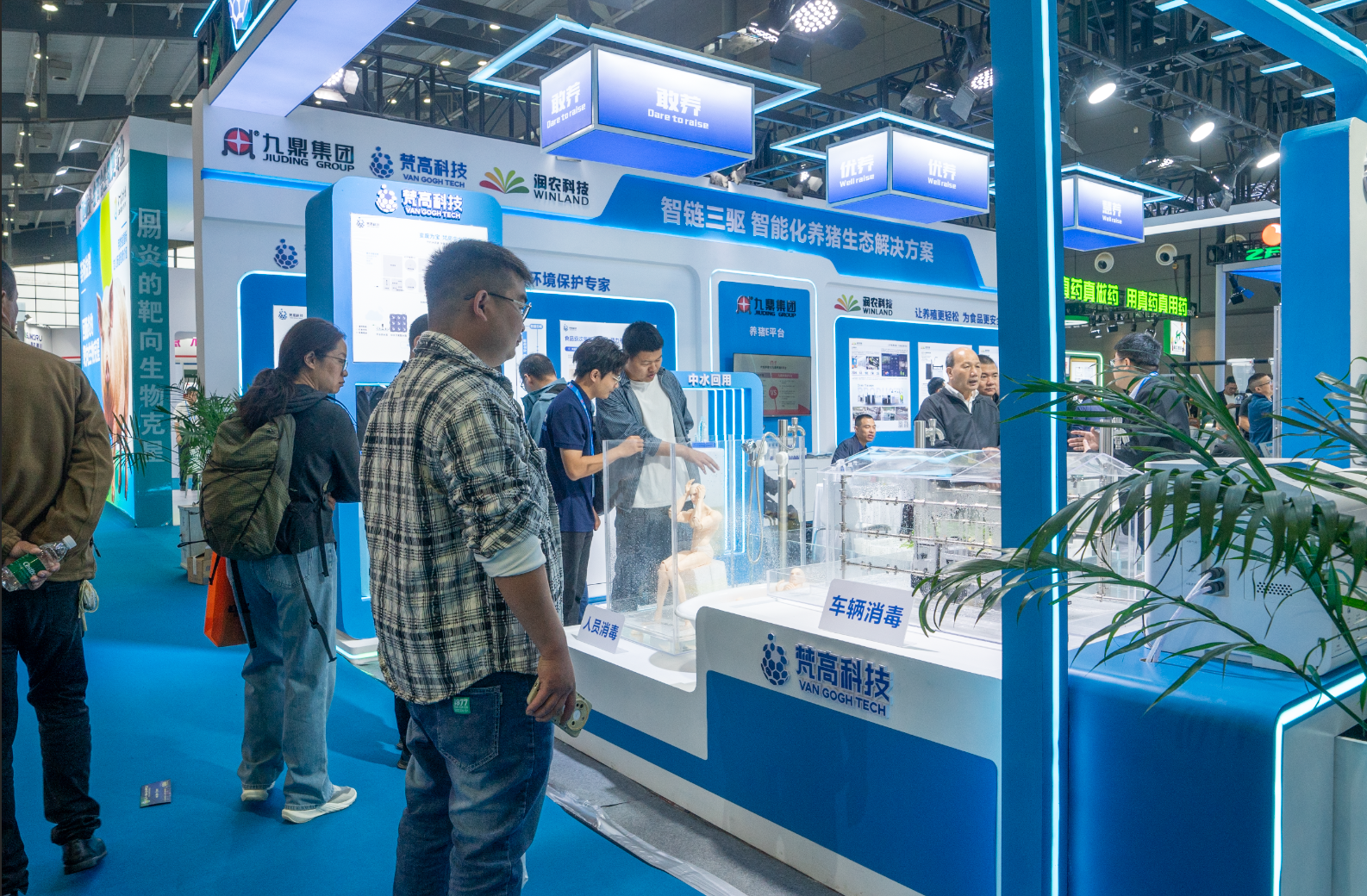 在九鼎集團(tuán)展區(qū)內(nèi),“智鏈三驅(qū)”智能化養(yǎng)豬解決方案的亮相吸引了大量專業(yè)觀眾駐足交流。