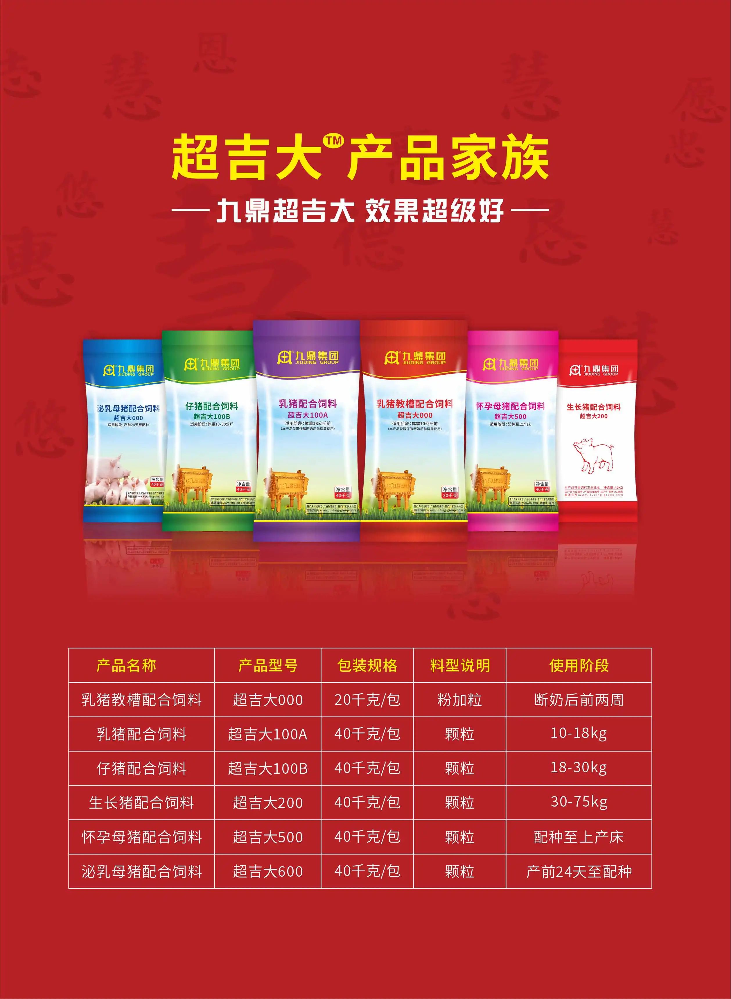 九鼎集團(tuán)扎根于豬飼料領(lǐng)域30年,深刻明白:低價(jià)飼料并不能真正幫助養(yǎng)豬實(shí)現(xiàn)盈利或減少虧損,飼料企業(yè)更應(yīng)該做的是提供好的飼料,讓豬場(chǎng)飼料的投入產(chǎn)出更好才是根本。為此,九鼎集團(tuán)于2023年主張產(chǎn)品戰(zhàn)略回歸:給客戶提供高價(jià)值飼料,與客戶共渡養(yǎng)豬難關(guān)。期待超吉大產(chǎn)品獲得成功,期待九鼎集團(tuán)創(chuàng)造更加輝煌燦爛的明天!