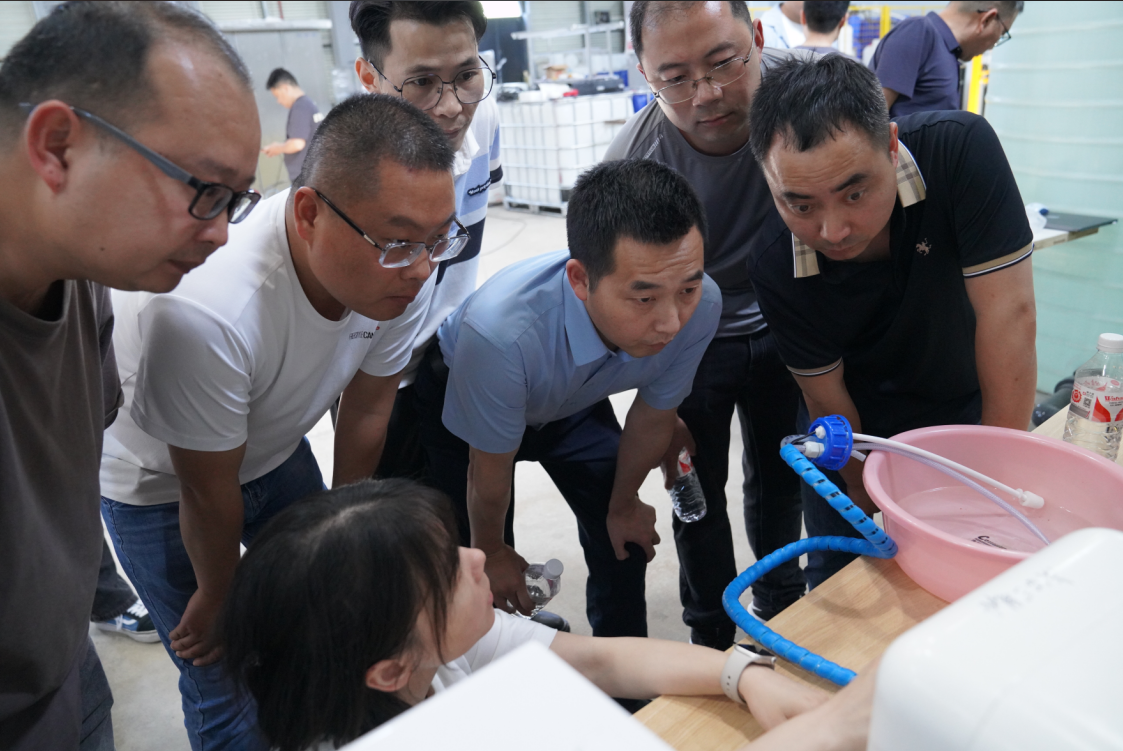梵高彭崇廉總經(jīng)理和管策老師主要介紹了梵高—次氯酸,綜合的解決方案和行業(yè)應(yīng)用的案例、營銷體系、營銷模式和不同應(yīng)用場景下的使用方案,并積極解答各服務(wù)老師的問題,大家對次氯酸設(shè)備非常感興趣。下午至梵高工廠參觀、安裝培訓(xùn)及考核,此次梵高之行大家收獲頗深,使各服務(wù)老師回去能夠給客戶講、能夠算成本、能夠安裝,利用好梵高次氯酸設(shè)備,提升服務(wù)競爭力。