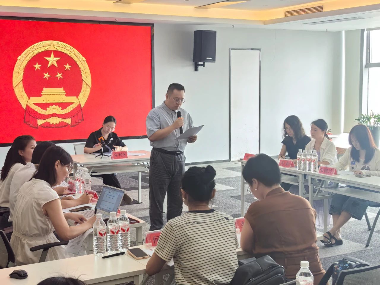 集團(tuán)董事兼法務(wù)投資管理體系負(fù)責(zé)人陳書龍全程督導(dǎo),法務(wù)部胡主律師擔(dān)任書記員、鄧巧琢律師擔(dān)任審判員,進(jìn)行專業(yè)指導(dǎo)。